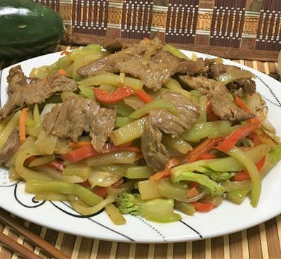 verdura cocida con carne de res desmenuzada, para 2 o 3 personas