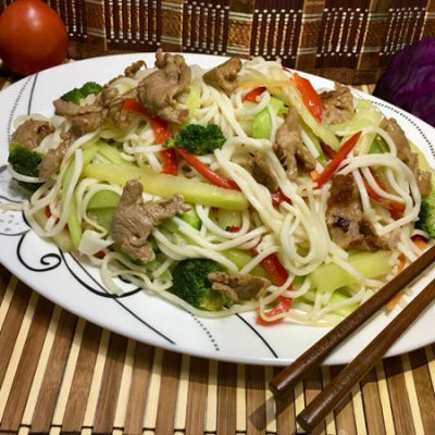 verdura cocida con pasta y carne de res, para 2-3 persona